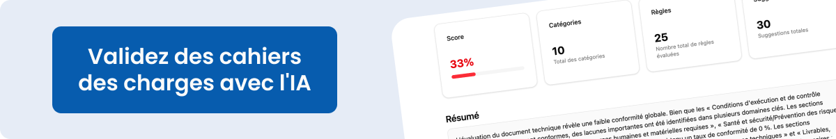 - Cahiers des charges (PCAP/PPT) avec critères de solvabilité et d'attribution alignés sur l'ordre de subvention.